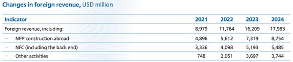 A much larger share of foreign revenue — up to 50% in recent years — comes from overseas nuclear power plant construction projects. Despite the “sanctions meat grinder” mentioned by Likhachev and the many problems affecting these projects, it is difficult to independently assess how much this has affected revenue figures. Moreover, sanctions pressure in previous years did not prevent this segment of foreign revenue from continuing to grow until 2025.
