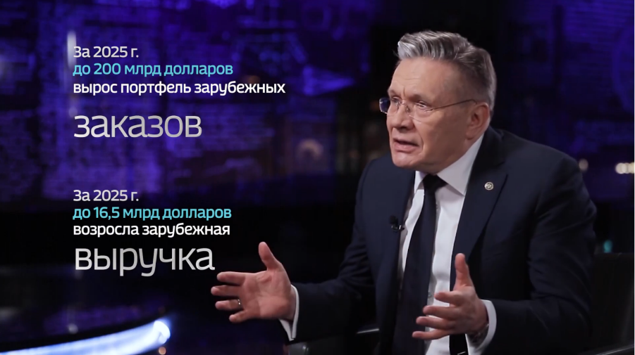 Speaking about the year’s financial results, Likhachev said that Rosatom’s revenue in the open segment exceeded 3 trillion rubles (about $35.8 billion at the average exchange rate for 2025). At the same time, an infographic shown on screen indicated that by the end of 2025 the company’s foreign order portfolio had grown to $200 billion, while foreign revenue reached $16.5 billion (figures Likhachev himself did not mention).