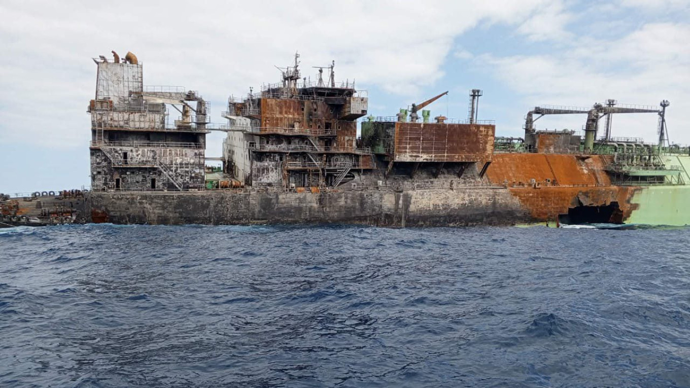 According to the Russian Ministry of Foreign Affairs, the ship was fully laden at the time of the incident and carried nearly 138,000 m3 (~60,000 tonnes) of LNG. As shown in photos taken after the incident and carried in the media, it seems possible that two tanks out four might have remained undamaged. This may mean that the ship is still carrying LNG of an approximate volume of 60-65 thousand m3 (~30000 tonnes) and remains a danger to other ships, coastal communities and marine species should further explosions and/or fire caused by overpressure in tanks and leaks of LNG take place.